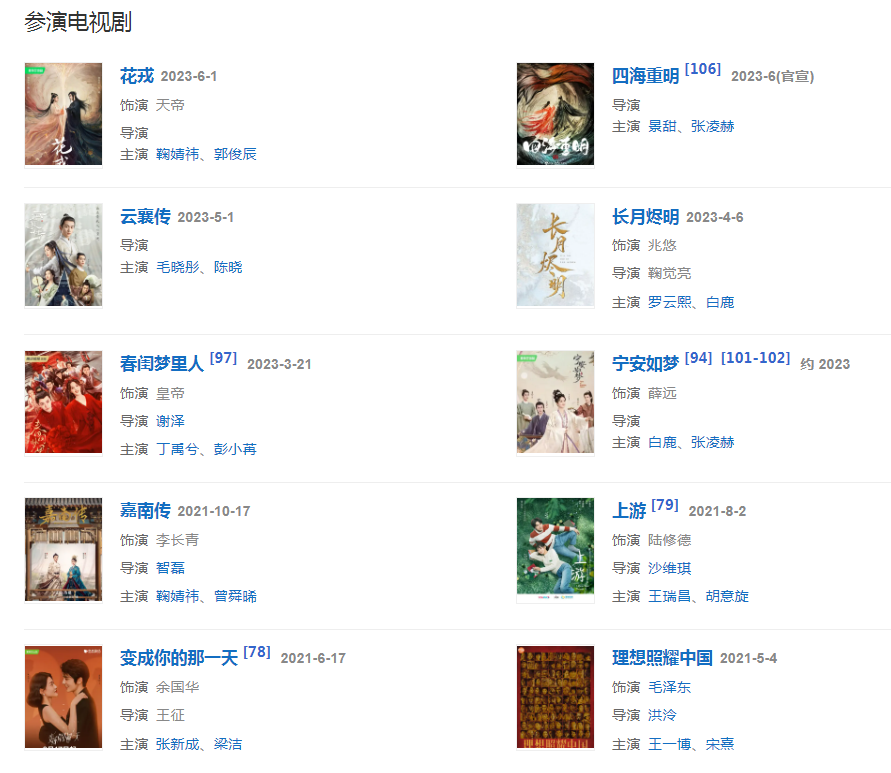 2020年2月,出演的懸疑古裝言情探案劇《兩世歡》開播 ;5月,主演的電視劇《長相守》在優(yōu)酷、愛奇藝和騰訊視頻上線播出。