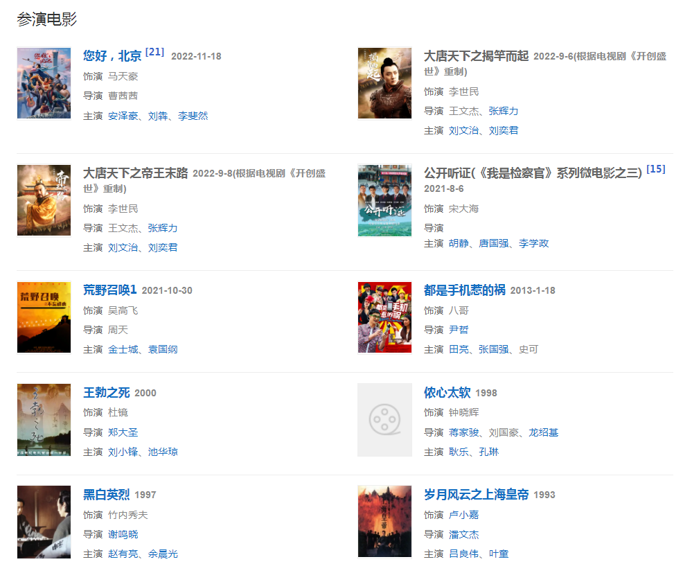 代表作品:花姑子、開(kāi)創(chuàng)盛世、馬鳴風(fēng)蕭蕭、鐵血尖刀、《我的燃情歲月》