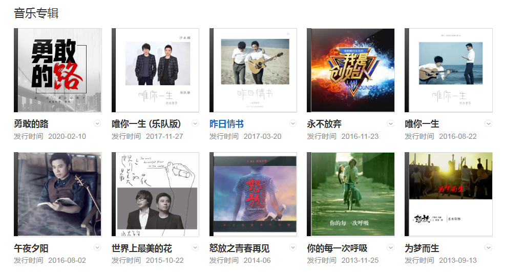 代表作品:一生有你、啟程、在他鄉(xiāng)、完美世界、蝴蝶花、青春再見、中學時代、愛上你我很快樂、再見了最愛的人