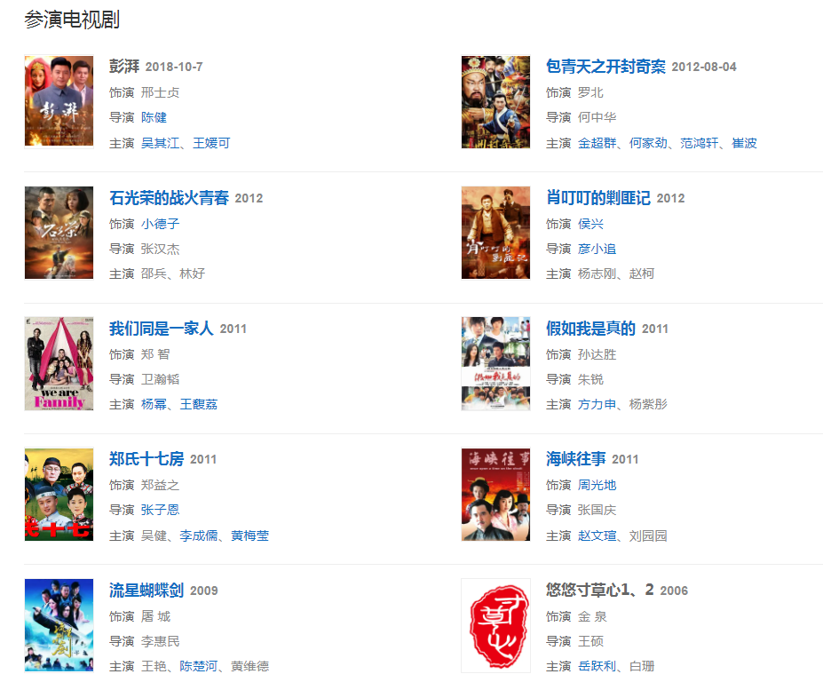 2012年,參演由金超群、何家勁主演的古裝電視劇《包青天之開封奇案》,在劇中飾演羅北。