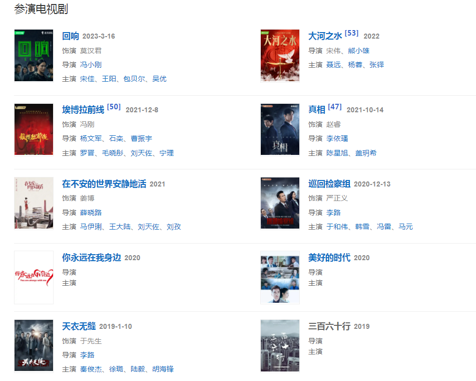 代表作品:尋找回來的世界、空鏡子、人民的名義、太太萬歲、守婚如玉、李春天的春天
