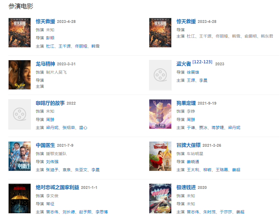 2015年上映其參演抗戰(zhàn)勝利70周年的電影《百團(tuán)大戰(zhàn)》。 同年主演抗戰(zhàn)劇《巨浪》。