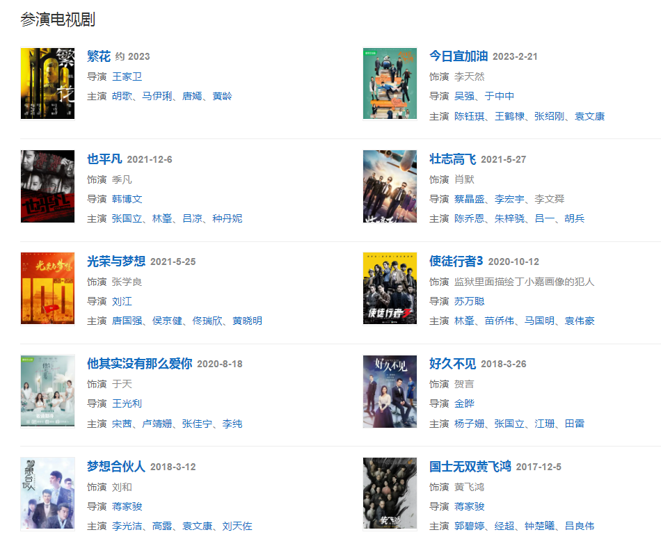 代表作品:人民的名義、北京愛(ài)情故事、無(wú)懈可擊之高手如林、老大的幸福、青河絕戀