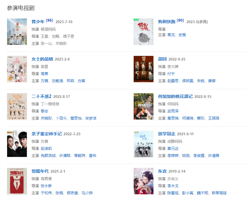 202121日,參演的《覺醒年代》在央視一套首播,飾演高君曼。
