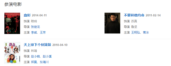 代表作品:后宮、女媧傳說之靈珠、單親媽媽、天天有喜2、陳情令、深宮諜影、唐宮燕