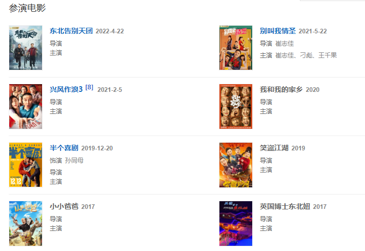 2022年,參演電視劇《鄉(xiāng)村愛情14》;參演電視劇《鄉(xiāng)村愛情之象牙山行善記》。422日,主演的喜劇電影《東北告別天團》上映。
