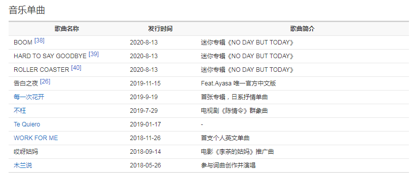 代表作品:WORK FOR ME、哎呀姑媽、創(chuàng)造101、木蘭說(shuō)、疾風(fēng)、愛(ài)很美味