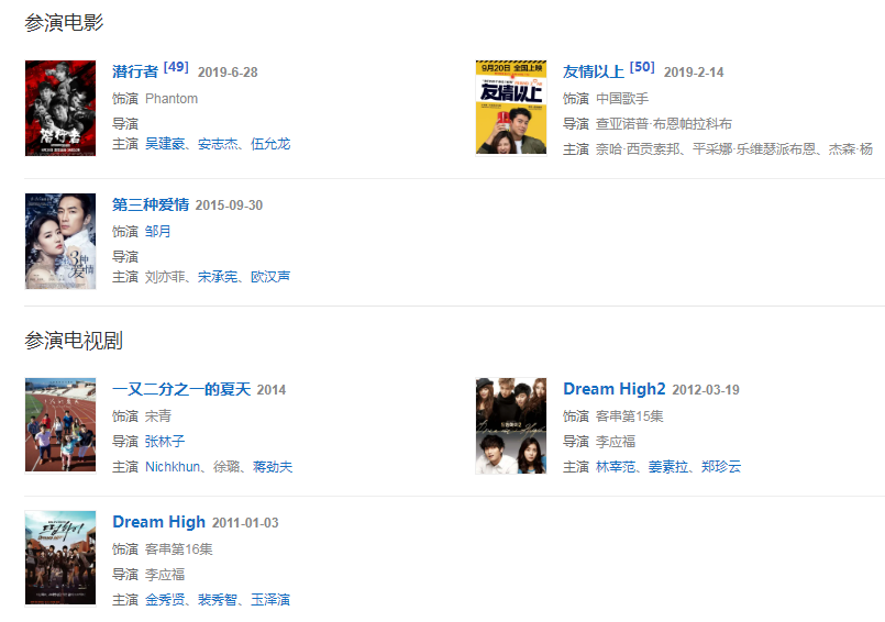 作為一名在韓國出道的中國歌手,孟佳也出演了不少影視劇,繼在電視劇《一又二分之一的夏天》演技受到肯定后,在電影《第三種愛情》中,她飾演劉亦菲的妹妹,對于男主角宋承憲一片癡心,演技再度獲得肯定  。