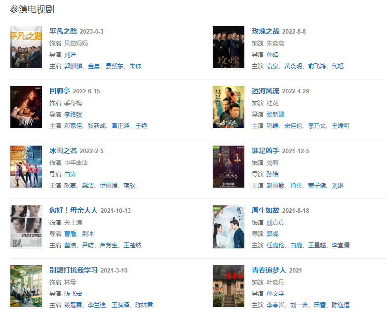 2021818日,參演的古裝電視劇《周生如故》播出;125日,參演的懸疑網(wǎng)劇《誰是兇手》播出。