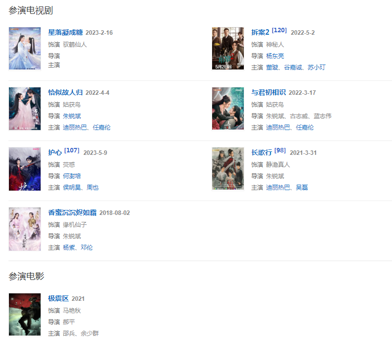 2018年,在電視劇《香蜜沉沉燼如霜》中飾演緣機(jī)仙子 ,并演唱片尾曲《左手指月》。