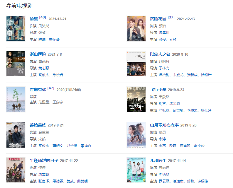 2021年7月8日,與秦俊杰主演的電視劇《衡山醫(yī)院》開播 ;12月13日,參演的浪漫愛情懸疑劇《沉睡花園》播出 ;參演電視劇《輸贏》播出。