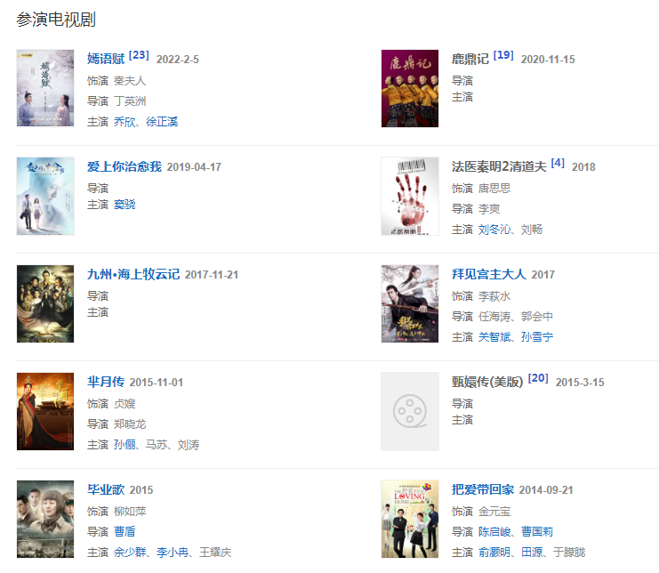 代表作品:傾世皇妃、后宮甄嬛傳、法醫(yī)秦明2清道夫