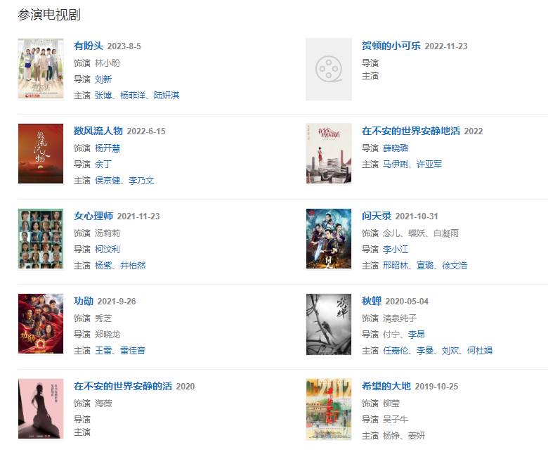 2023年6月24日,領銜主演的都市療愈劇《女心理師》在江蘇衛(wèi)視播出;8月5日,與張博領銜主演都市情感劇《有盼頭》在東方衛(wèi)視播出,在劇中飾演為人正直善良的元氣少女林小盼。