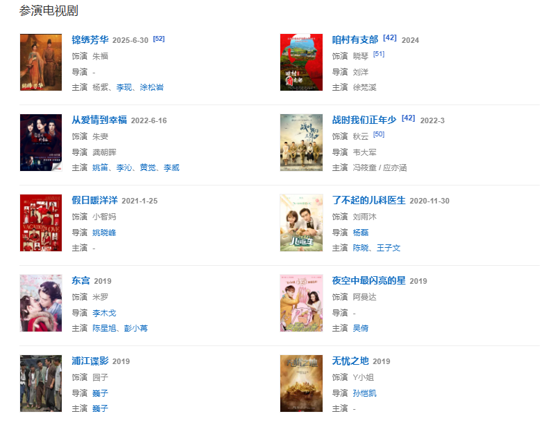 2025年6月23日,參加的《我們的宿舍》播出。6月30日,出演的電視劇《錦繡芳華》播出。