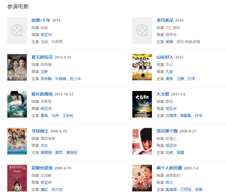 2002年,與楊亞洲導(dǎo)演首次合作電影《美麗的大腳》并獲得中國(guó)電影金雞獎(jiǎng)最佳女主角獎(jiǎng)。
