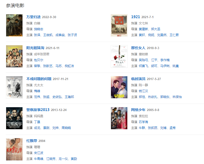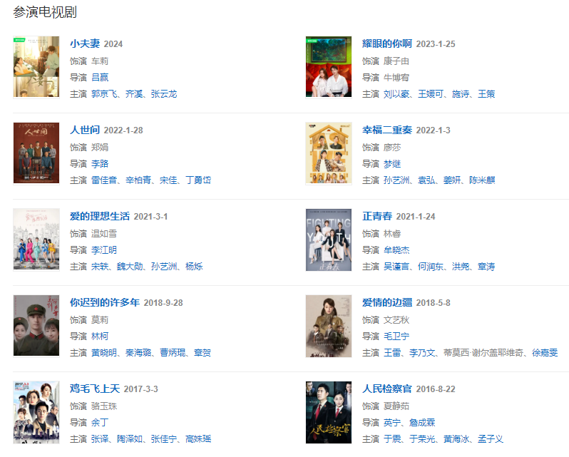 202213日,主演的兩性關(guān)系話(huà)題劇《幸福二重奏》在央視八套播出  128日,與雷佳音、辛柏青、宋佳領(lǐng)銜主演的現(xiàn)實(shí)題材劇《人世間》播出;3月,參與的歌曲《燈火》抗疫特別版上線。