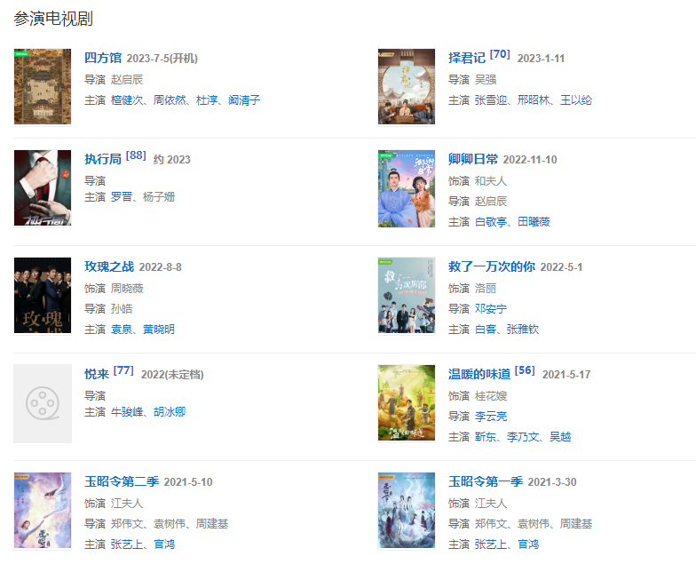 20212月,趙珂出演的古裝劇《贅婿》在愛奇藝播出;330日,參演的古裝奇幻劇《玉昭令第一季》在愛奇藝獨播;4月,主演的當代農(nóng)村劇《溫暖的味道》播出;同年,她還參演了古裝劇《擇君記》;參演電視劇《救了一萬次的你》播出。