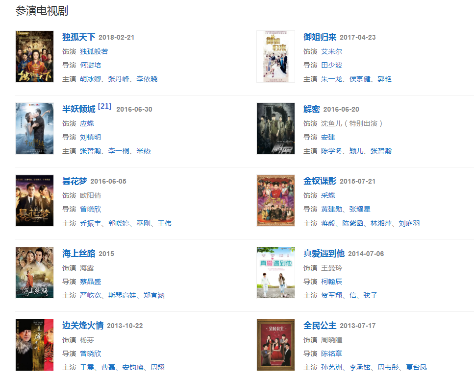 代表作品:下一站,幸福、斗魚(yú)、仙劍奇?zhèn)b傳、獨(dú)孤天下、倚天屠龍記、雪山飛狐、蕓娘、古今大戰(zhàn)秦俑情