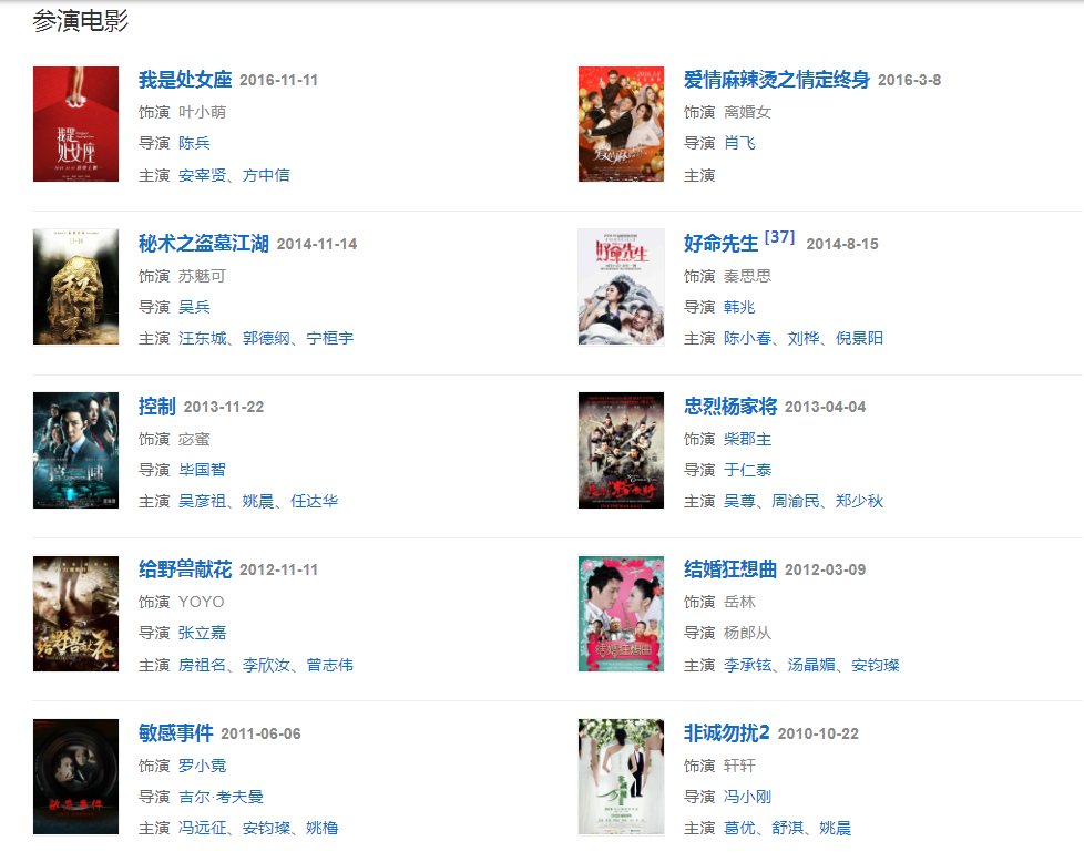 2016年,憑借浪漫愛(ài)情電影《我是處女座》獲得了第8屆澳門(mén)國(guó)際電影節(jié)最佳女主角提名。