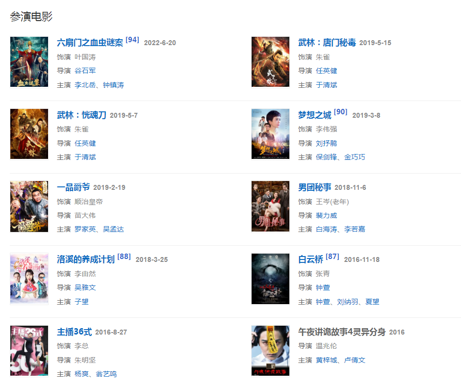 2016年4月,主演電視劇《楊光那些事》 ;同年,主演電影《主播36式》。
