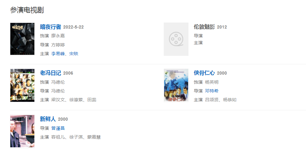代表作品:女人四十、犀照、特警新人類、幽靈情書