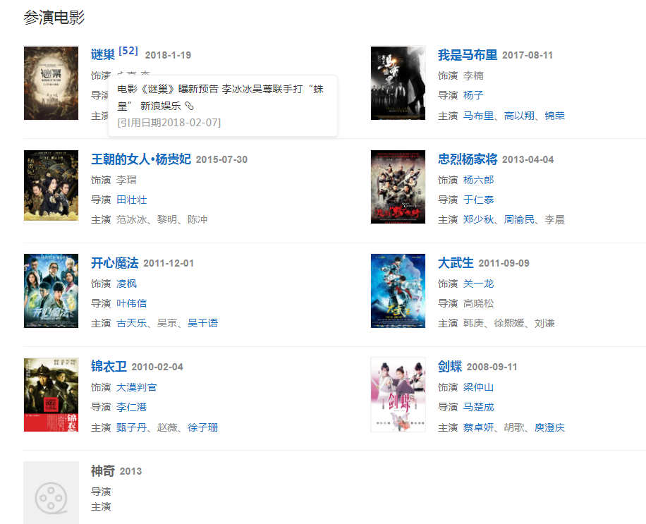 2015年,主演古裝愛情電影《楊貴妃》 。