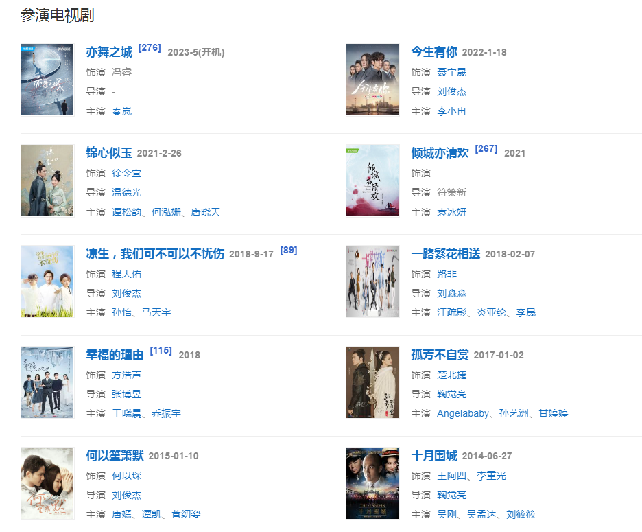 代表作品:何以笙簫默、天涯明月刀、最美的時光、來不及說我愛你、十月圍城、一觸即發(fā)、三人行、驚天大逆轉(zhuǎn)、OREA、何以愛情、樂作人生、有一天我們都會老、故鄉(xiāng)香、一路繁花相送